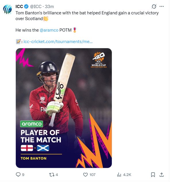 Soon after, Michael Leask dismissed Harry Brook as Scotland sensed a chance of staging a comeback in the match. However, Sam Curran joined Banton, and the pair ensured England didn’t suffer any significant setbacks during the chase.