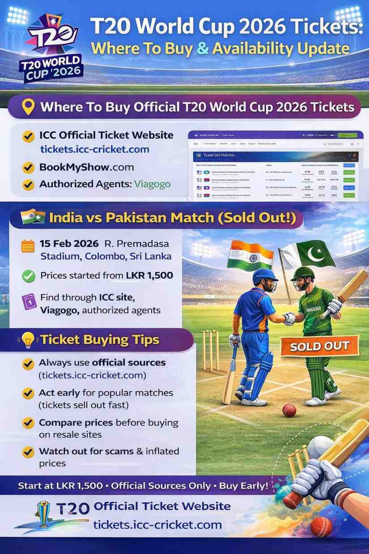 While the India-Pakistan fixture is completely sold out, tickets for other T20 World Cup 2026 matches remain available across multiple venues in India and Sri Lanka.