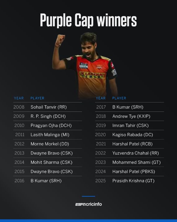 Bhuvneshwar operated on a different level between 2014 and 2017, taking 87 wickets in just 59 matches, 17 more than the second highest. He claimed the Purple Cap for the first time in 2016 with 23 scalps, bowling SRH to their maiden IPL title. He bettered his returns in 2017, taking 26 wickets and defending his Purple Cap. To date, Bhuvneshwar is the only one to top the IPL wickets charts in successive seasons, while Dwayne Bravo and Harshal Patel are the only others to do it twice in a career.